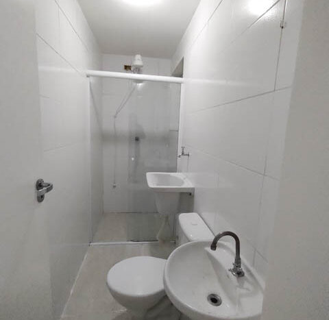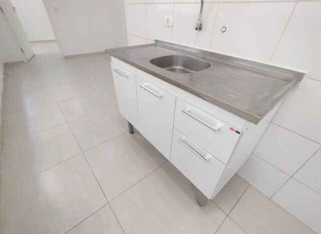 APARTAMENTO DE 01 DORMITÓRIO, SALA, COM SACADA, COZINHA COM ARMÁRIOS E 01 WC, COM box DE VIDRO E PISO FRIO.