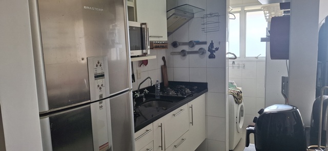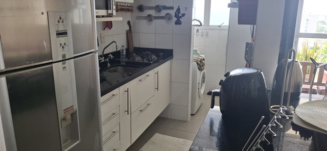 APTO COM SALA AMPLA, CON SACADA, LAVABO, COM EXCELENTE VISTA E COM EXCELENTE ILUMINAÇÃO NATURAL, MOBILIADA COM MESA, SOFÁ, TV, COZINHA PLANEJADA MOBILIADA COM GELADEIRA, FOGÃO, MICRO ONDAS, ÁREA DE SERVIÇO COM MÁQUINA LAVA E SECA..